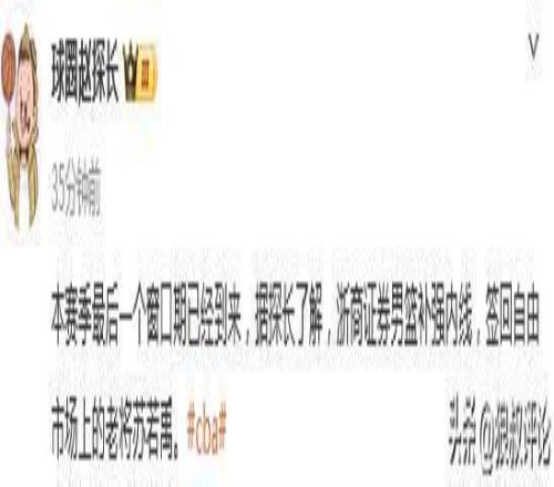 “球圈趙探長”發(fā)文:本賽季最后一個窗口期已經(jīng)到來,據(jù)探長了解,浙商證券男籃補(bǔ)強(qiáng)內(nèi)線,簽回自由市場上的老將蘇若禹。