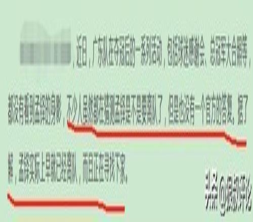 當時有媒體報道,孟鐸以私人原因離開球隊,隨后剩下的常規賽,季后賽都沒有再出現在廣東男籃陣容名單。