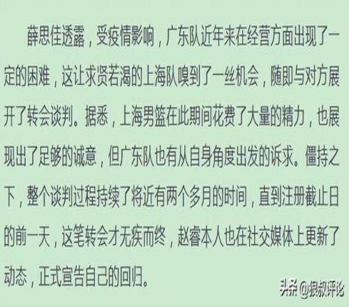 最終的結果是趙睿和周琦互換東家,徹底解決了轉會事宜,趙睿短暫加盟新疆后,去年夏天轉會到北京效力。