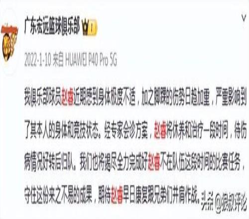 廣東男籃官方社媒回應表示:我俱樂部球員趙睿近期感到身體極度不適,加之腳踝的傷勢日趨加重,嚴重影響到了其本人的身體和競技狀態。經專家會診方案,趙睿將休養和治療一段時間,待傷病情況好轉后歸隊。我們也將竭盡全力完成好趙睿不在隊伍這段時間的比賽任務,守住這份來之不易的成果,期待趙睿早日康復跟兄弟們并肩作戰。