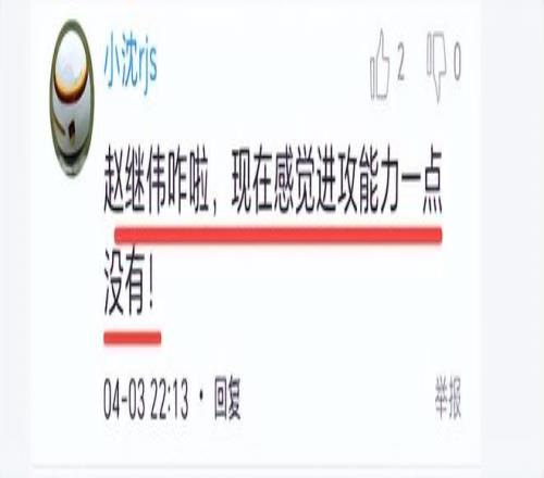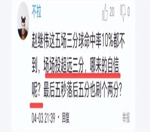 趙繼偉打了全隊最多的31分鐘,除了助攻外,終結能力真差,命中率極低,全場11投2中,三分線外5次出手全部打鐵,運動戰只得可憐的4分。遼寧球迷說,這場比賽如果趙繼偉讓出一些球權都不會輸。筆者認為,雖然三大國產后衛均拉胯,但是作為隊長和國家隊主力后衛的趙繼續應該承擔更大的輸球責任,說他是禍首也不為過。