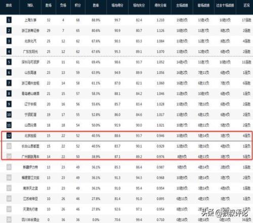 廣東和北京兩支上游球隊獲勝的同時,對于北控和吉林來說,接下來劇情深受外界的關注,這兩支球隊目前的戰績都是15勝22負,分別排在積分榜第12和13位。