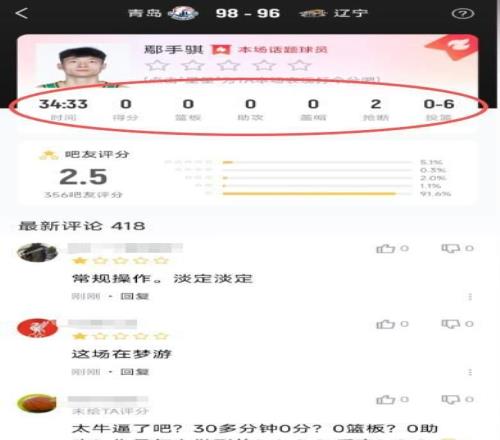 除此之外,他還有4次無謂的犯規,每次犯規都給青島送罰球機會,相當于一次次幫對手拉開分差。6次犯錯,每一次都在消耗球隊的贏球希望,說他是輸球禍首,真的一點都不冤枉。