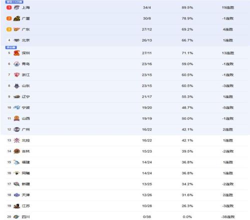 現在26勝北京暫時排在第四,27勝深圳排在第五,不過深圳因為少打一輪,所以等到深圳和新疆比賽結束,深圳贏球就能重回第三,廣東則跌至第四。假設后續深圳四場比賽全部贏下,廣東三場比賽全部贏下,那么最終的前四排名就是上海、廣廈、深圳和廣東。這四支球隊可以免打附加賽,假設深圳后續四場比賽輸掉其中一場,且廣東三場比賽全部贏下,那么前二不變,廣東第三,深圳第四。