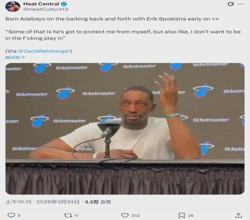 近日阿德巴約接受采訪時,多次強調自己不想打附加賽。理想很豐滿,現實很骨感。目前熱火38勝34負排名東部第9,領先第10的黃蜂0.5個勝場,落后第8的魔術同樣是0.5個勝場。熱火落后第6的老鷹2個勝場,想要逃離附加賽很難。