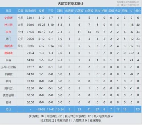 杜蘭特出戰39分32秒,投籃22中15,三分9中5,罰球8中5,得到40分7籃板5助攻4失誤,正負值-18全場最低。申京19投16中,得到33分13籃板10助攻2搶斷2蓋帽,正負值-6。杜蘭特、申京、阿門合計54中39得到96分,其余隊友38中10僅得28分。