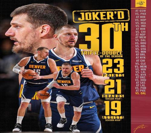 約基奇23+21+19刷爆紀(jì)錄,掘金險(xiǎn)勝獨(dú)行俠!穆雷53+6+9記3分暴走創(chuàng)兩大神跡!