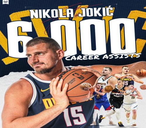 第4、送出本場第11次助攻之后,約基奇的常規(guī)賽生涯助攻總數(shù)突破6000大關(guān),歷史中鋒首人。