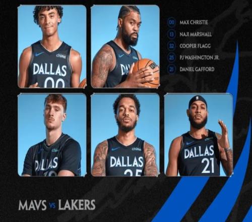 首發陣容方面,湖人隊這邊,東契奇、里夫斯和斯瑪特(腳踝)繼續缺席,雷迪克教練排出的首發五人組為:肯納德、詹姆斯、八村壘、拉拉維亞、艾頓;獨行俠這邊,歐文和萊夫利缺陣,首發陣容則為:克里斯蒂、馬紹爾、弗拉格、華盛頓、加福德。