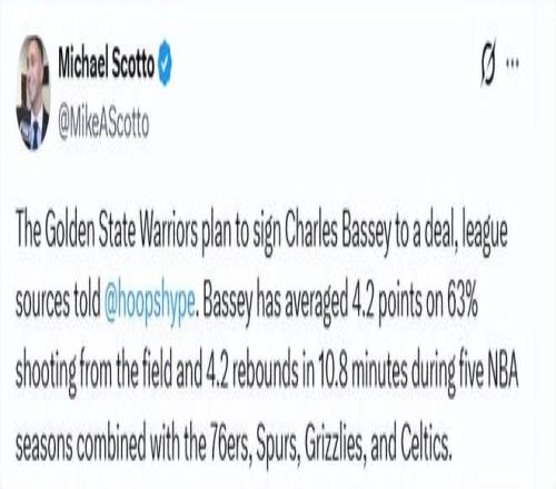 巴錫近期以兩份10天短合同的身份為凱爾特人效力了20天。隨著他在波士頓的第二份10天合同于周日到期,他已成為自由球員。隨后,勇士決定簽下他,來補強內線。
