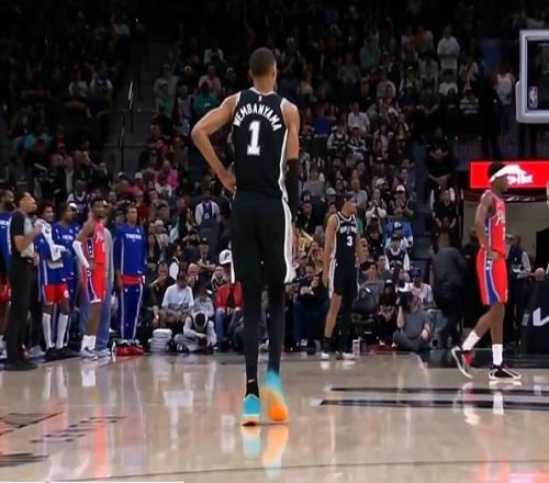 在與東部勁旅76人的比賽當中,文班亞馬兩度遭遇傷病侵襲,他先是在第二節開局階段,被喬治拉到手臂痛苦倒地,隨后返回更衣室接受治療。所幸,文班亞馬沒有大礙,他之后重新返回賽場比賽。