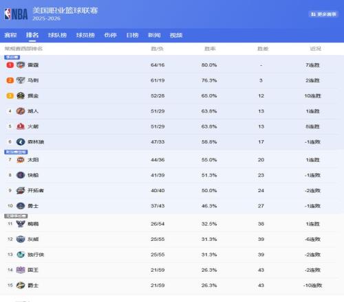 目前,掘金52勝28負,湖人、火箭51勝29負,分列3-5位,3隊之間的勝負差僅1場,展開了西部第3爭奪戰!