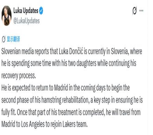 在斯洛文尼亞短暫休整后,東契奇很快將重返馬德里,進行下一階段的治療。之后,他將從西班牙首都飛回洛杉磯,在那里與湖人會合。