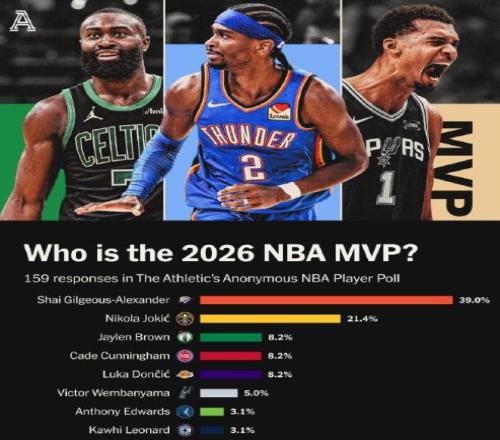 至于MVP,文班亞馬雖然被官方排在MVP第一名,但亞歷山大也是第一名的有力爭奪者,從外網球員投票看,亞歷山大斷崖式領先,約基奇排名第二,文班甚至不能進入球員心中MVP前五名!