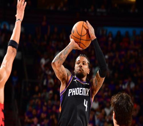 第三節末與第四節初也是在杰倫格林連連命中中距離的帶領下,太陽隊才打出一波流進攻反超領先11分,全場砍下35分5板2助,一場比賽的得分就超過了上個賽季為火箭效力時最后3場的總和,上個賽季季后賽最后三場杰倫-格林分別拿到11分、12分和8分。