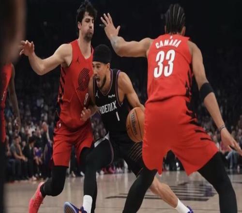 比賽一上來開拓者進攻端有點不在狀態,年輕球員沒有經歷過這樣的大場面難免緊張,主場作戰的太陽在杰倫格林、布克、狄龍三大核心的帶領下打出14-7的夢幻開局,經歷過開場短暫適應后,開拓者攻防開始發力,連續命中三分球后快速縮小分差至1個回合,太陽這邊利用布克、杰倫格林穩定的中距離控制場上局面,首節打完太陽33-31領先2分。第二節布克狄龍場下休息,杰倫格林連續三次投籃不中,開拓者這邊接連打出防守反擊很快反超太陽接近兩位數,暫停回來重新拿上布克與狄龍,前者連得4分穩住局面,但是好景不長太陽進攻有進入停滯,開拓者一舉拉開分差至14分,關鍵時刻杰倫格林站出來內突外投,3+1也有太陽半場將比分追到62-65!