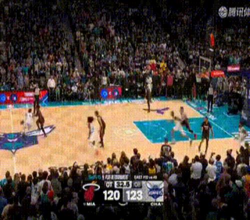 最后18.8秒,黃蜂落后4分112-108,弧頂黃蜂命中一個關鍵3分,112-111。