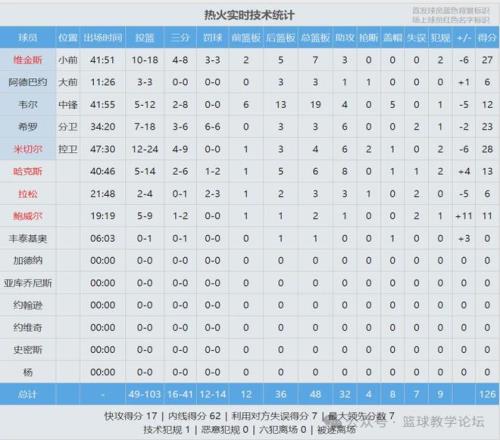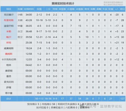 三球砍下30分5板10助、布里奇斯28分9板2助3帽、米勒23分4板6助2帽;小米切爾28分4板6助2斷、維金斯27分7板3助、希羅23分3板6助。