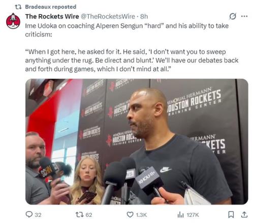 烏度卡還談到近期對(duì)申京非常嚴(yán)厲,他說(shuō)道:我剛來(lái)的時(shí)候申京自己要求我直接一點(diǎn),不需要我把他的小毛病掩蓋過(guò)去,在比賽中可以強(qiáng)硬的爭(zhēng)論他不會(huì)介意這些東西。