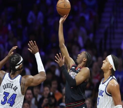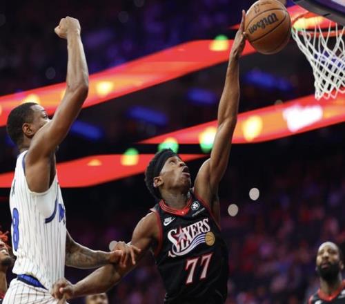 次節比賽,小瓦格納突破拿分,喬治找到手感連拿5分,布萊克突破打成2+1咬住,接著兩隊又連續打鐵,格萊姆斯突破2+1破荒;魔術陷入近3分鐘得分荒,班凱羅2+1止血,76人也未能延續勢頭,馬克西24秒壓哨三分穩住,魔術連續沖擊拿分追至42平;喬治跳投命中止血,貝恩連續造殺傷后跳投也進,薩格斯三分命中,76人找回狀態,喬治和埃奇庫姆突破拿分,德拉蒙德三分命中,半場以59-55領先。