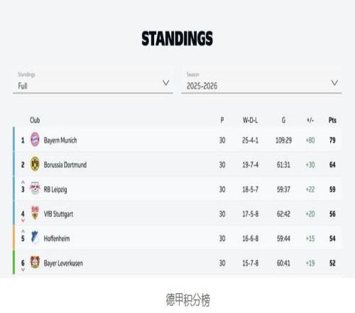 拜仁在2025/26賽季的德甲聯賽中,從第一輪一直領跑到最后一輪。他們開局火爆,早早坐穩了榜首位置。