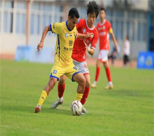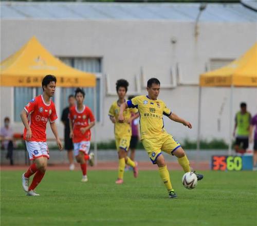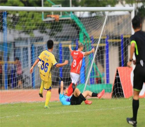 上半場尾聲,主場隊伍迎來突破。第43分鐘,容桂9號球員王甲強抓住機會率先破門,幫助球隊打破僵局,容桂以1:0領先結束上半場。