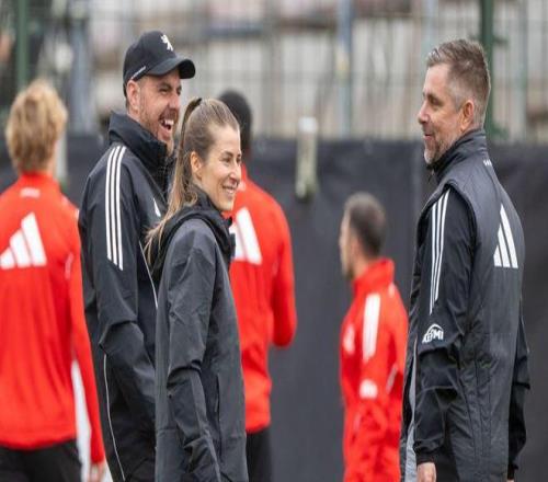 2023年,她成為德甲歷史上首位進(jìn)入一線隊(duì)教練組的女性——注意,是在全男性后臺(tái)團(tuán)隊(duì)里。此后她帶過U19梯隊(duì),執(zhí)教過德國女足青年隊(duì),本賽季作為助理教練全程參與一線隊(duì)工作。當(dāng)主帥Steffen Baumgart下課,她按順位接班,鏈條完整。
