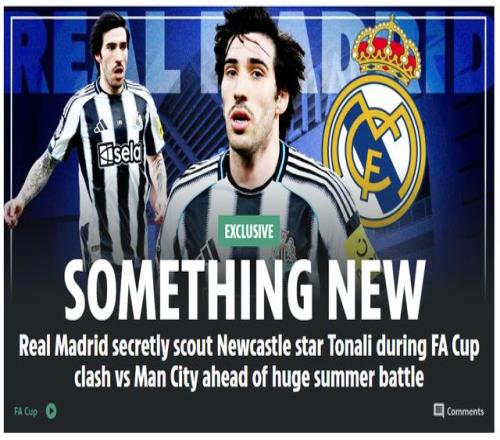 《太陽報》指出,皇馬球探來英倫觀看足總杯,帶著兩個目的:其一,研究分析曼城的戰術。下周中的歐冠1/8決賽首回合,皇馬將在主場迎戰曼城。皇馬技戰術團隊,希望尋找到破解瓜迪奧拉打法的答案。其二,皇馬在關注、考察紐卡中場托納利。