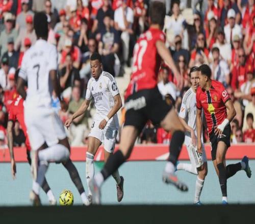 比賽伊始,皇馬便掌控主動權,姆巴佩、居萊爾頻繁沖擊馬略卡防線,卻始終難破僵局。第22分鐘,居萊爾直塞送單刀,姆巴佩面對門將的推射被神勇化解;第25分鐘,卡馬文加精準傳球,姆巴佩小角度射門再度被拒。機會的揮霍,最終換來懲罰——第42分鐘,馬略卡憑借簡潔配合,莫拉內斯低射破門,皇馬帶著0-1劣勢進入下半場。