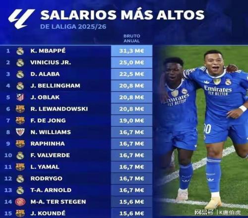 在西甲聯賽中,姆巴佩以3130萬歐元的稅前年薪位列第一,比收入第二的維尼修斯要高出足足500萬之多,可以說這樣的頂薪既讓他收獲滿滿,也讓他飽受爭議。畢竟自來到西甲后,他并未表現出獨一檔的存在,反而因為他的加盟而讓皇馬整個團隊都在為他買單。球迷們反復嘮叨的:他走了,巴黎奪冠了;他來了,皇馬又四大皆空。