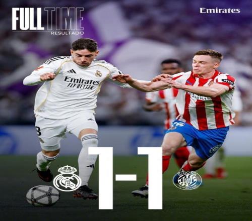 全場比賽結束,皇馬主場1比1戰平赫羅納,各項賽事3連不勝(2負1平),落后巴薩6分。