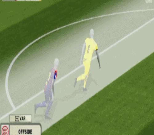 直到第63分鐘,轉播鏡頭才最終給出了VAR半自動越位系統的圖像,這一畫面顯示頭球傳中的埃里克-加西亞越位非常輕微。