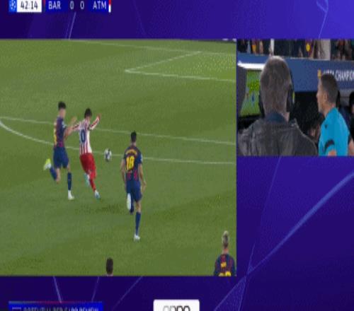 次回合第40分鐘,奧爾莫在禁區內控制住球權準備射門,略倫特在后方將其推倒,裁判未判罰點球,VAR也未對此介入。