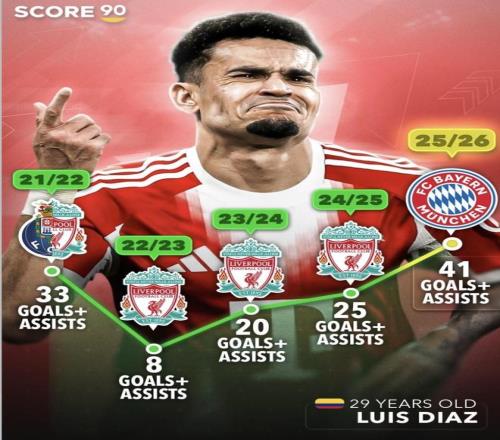 單賽季40場比賽貢獻23個進球和18次助攻,歐冠客場對陣皇馬取得進球。這些內容拼起來,已經足夠說明迪亞斯本賽季的實力。他不僅是把數據打高了,更是把自己從強隊里的邊路球員,變成了能夠穩定輸出、并且在關鍵比賽發揮作用的前場核心。拜仁這筆引援到現在看非常成功;迪亞斯本人,也確實在29歲這個年紀,把個人的職業生涯推到了一個新的高度。