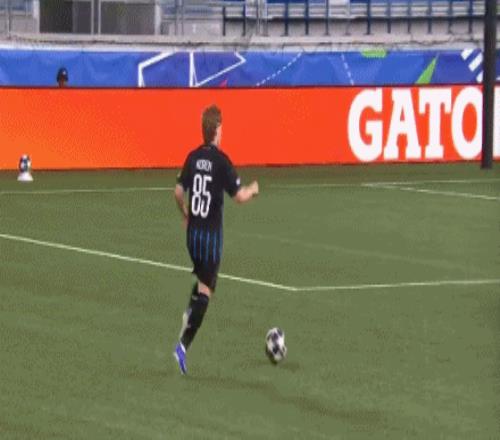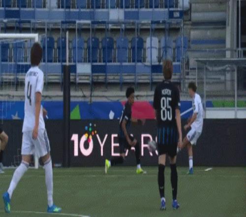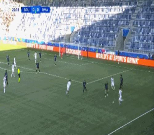 第64分鐘,科倫下底橫傳,延森搶點破門,布魯日U19 1-1皇馬U19