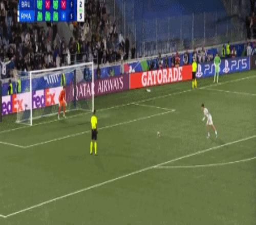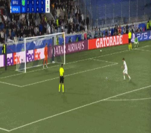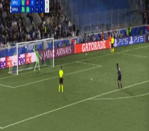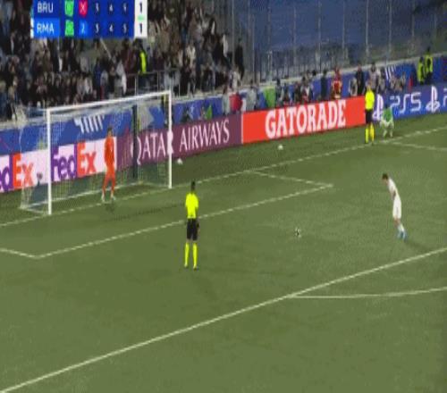 第一輪,戈馬埃雷罰進,納瓦斯庫埃斯罰進,布魯日1-1皇馬
