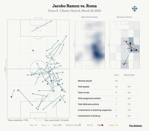 在對陣羅馬的上半場,法布雷加斯希望他的中衛哈科沃-拉蒙把他的盯防對象斯蒂芬-埃爾沙拉維帶到他不想去的位置。拉蒙移動到中場。他也曾上提到右路高位。這造成的混亂讓科莫獲得了優勢。拉蒙在高位贏得了二次球權和對抗。他還作為多出來的一個人參與進攻。“今天管用的明天可能就不管用了,”法布雷加斯坦言。但對羅馬,它管用了。