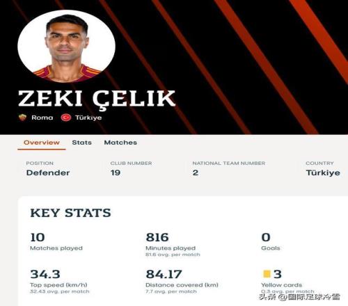 這里的速度,是取自歐足聯官方的權威統計,切利克在歐聯杯賽事里最高時速達到34.3公里/小時。