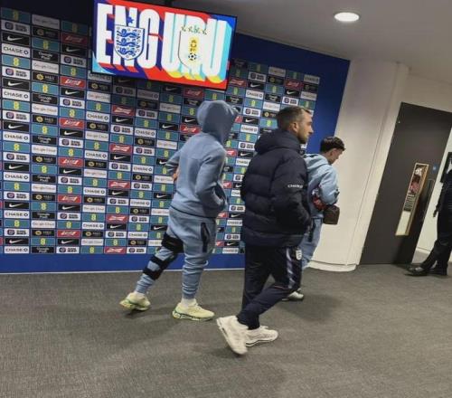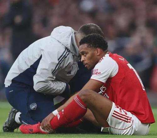 賽后阿森納邊鋒被拍到左腿戴著護具一瘸一拐走過了混采區。