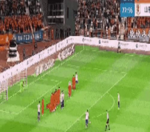 第22分鐘,泰山隊獲得一次前場任意球,克雷桑的射門擊中橫梁。