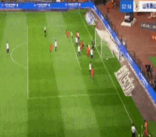 第28分鐘,泰山隊三中衛之間的傳遞出現問題,玉昆高位逼搶取得效果,得球后,主隊經過精妙傳遞給到奧斯卡,后者勁射破門。2-0!