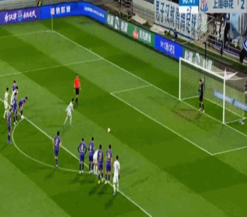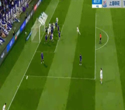 上半場補時第4分鐘,高天意主罰左側角球,朱辰杰頭球沖頂破門,1比1!
