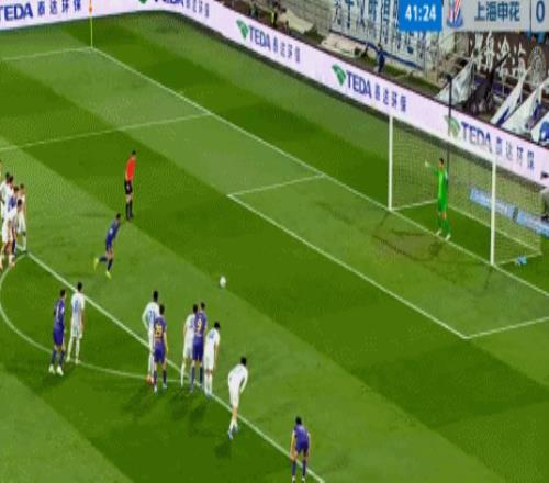 比賽第39分鐘,蓋伊禁區內手球,主裁判回看慢鏡頭之后判罰點球,謝蒂內主罰點球破門,1比0!這是津門虎本賽季首個進球。