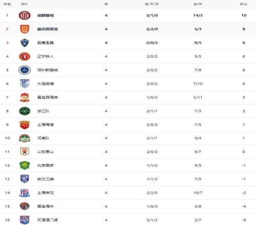 在積分榜上,成都蓉城以10分排名榜首,戰績是3勝1平,保持不敗。重慶銅梁龍2勝2平,拿到8分,排名第2。只有成都蓉城、重慶銅梁龍和上海申花取得不敗戰績。云南玉昆、遼寧鐵人、深圳新鵬城和大連英博都是6分。上海海港1分,排名第9。北京國安負1分,排名第12。上海申花贏球,4輪聯賽2勝2平,總積分是負2分,排名倒數第3。