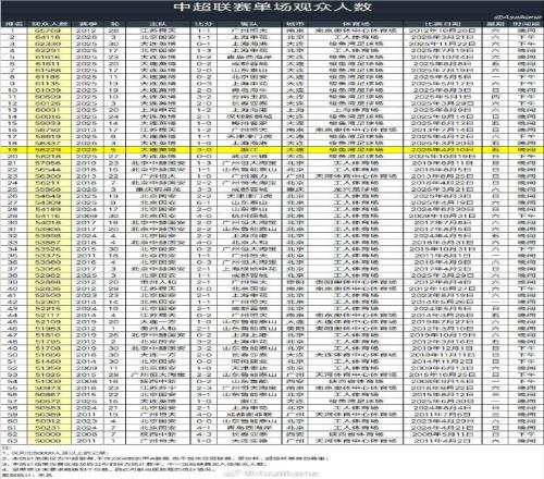 本場比賽的現場觀眾人數排名中超歷史第19位,在前20名中,大連英博占15場。