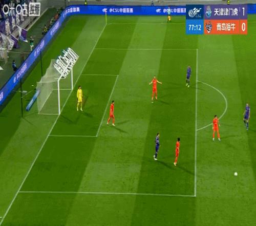 第77分鐘,海牛后場出球被斷,哈達斯傳中后,謝蒂內在亂戰中完成破門!津門虎1比0領先!