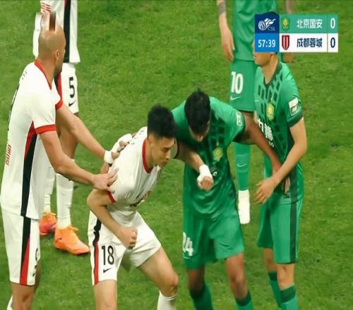 客場作戰的成都蓉城,開場之后絲毫沒有保留,全力向北京國安的禁區發起進攻。席爾瓦邊路的突破,數次制造威脅。第14分鐘,韋世豪報復性的鏟倒恩科洛洛,險些引發大規模的沖突,主裁判趕緊出示黃牌平息憤怒。