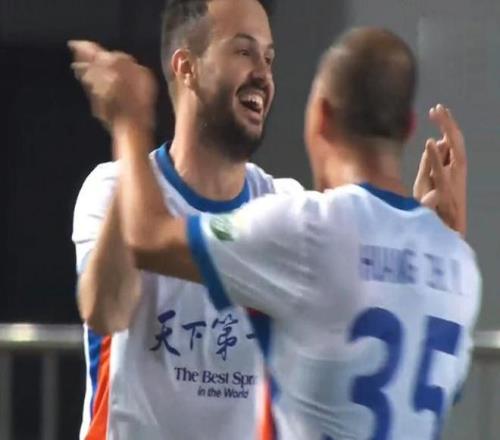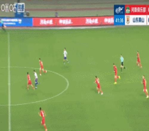第43分鐘,王國明出擊失誤,卡扎伊什維利挑射破門,山東泰山1-0領先