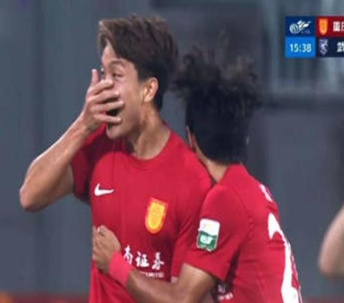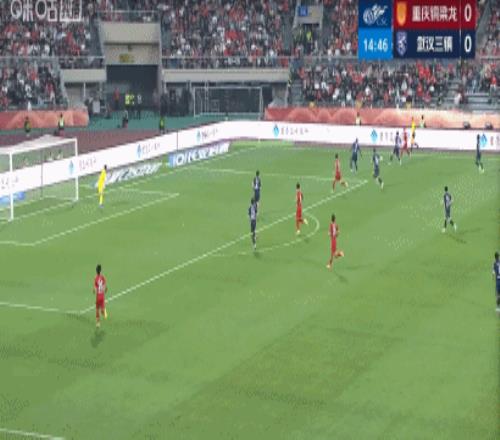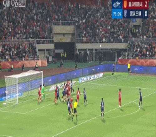 第15分鐘,方鏡淇撲球出現致命失誤,陳純新一記補射得分,重慶銅梁龍主場1-0領先!