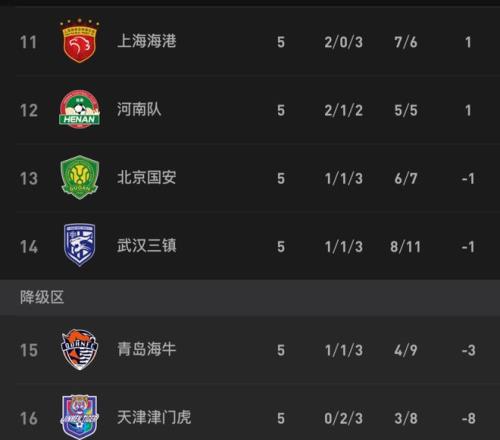 除了津門虎之外,還有3隊5輪過后積分仍為負(fù)數(shù)。國安本輪被蓉城逆轉(zhuǎn)后,積分仍為-1分,而三鎮(zhèn)和海牛則分別是-1分和-3分。